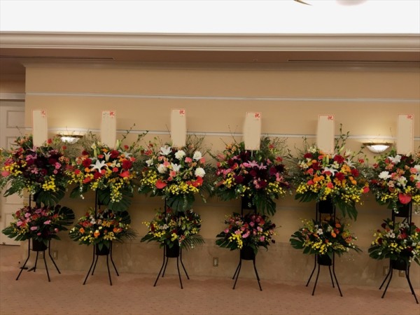 ホテルにスタンド花を納めさせていただきました! 今回は三種類作り、交互に並べてみました!