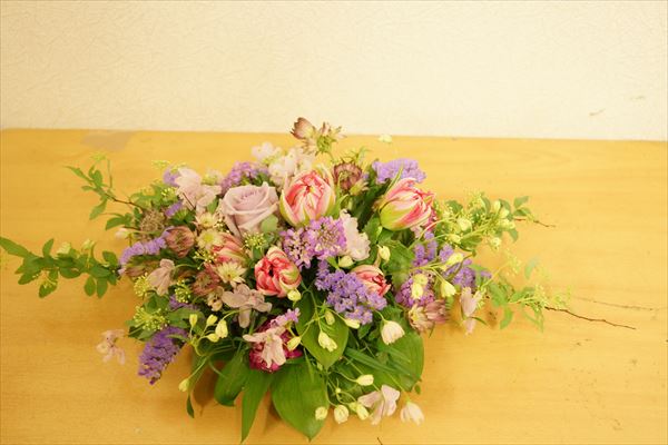 アレンジ教室今年もどうぞよろしくお願い致します。 昨日、今日と新年最初のアレンジ教室を行いました。 春のお花でテーブル装花風のアレンジです。 パーティーなどのテーブルの真ん中に飾るイメージです! 画像がいくつか小さくなってしまう場合は、もう一度読み込みし直しますと、うまく表示されます!