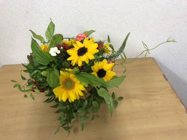 ひまわりとユリのラウンドアレンジ アレンジ教室 2018.06.21 今回はひまわりとユリに、グリーンをたくさん使いフレッシュなイメージで作りました!まだユリが蕾で目立たないですが、とても奇麗な品種ですので咲いてきたらさらに素敵になります! 共有: クリックして X で共有 (新しいウィンドウで開きます) X Facebook で共有するにはクリックしてください (新しいウィンドウで開きます) Facebook 関連