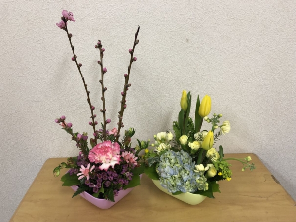 2月 ひな祭りアレンジメント アレンジ教室 2019.02.27 今回は2色の器を使って、2色の花を振り分け作成して頂きました!紫陽花は好きな色を選んでもらいました! 共有: クリックして X で共有 (新しいウィンドウで開きます) X Facebook で共有するにはクリックしてください (新しいウィンドウで開きます) Facebook 関連