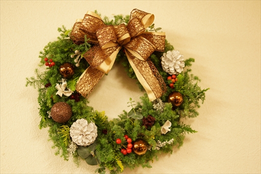 アレンジ教室今年もクリスマスシーズンになりましたね。 リース教室の生徒さんの作品です。 好きな飾りやリボンを選んで頂き、個性あふれる素敵な作品になりましたね! まだまだリース教室は続きますので、興味ある方はご連絡下さい!03-3938-8457