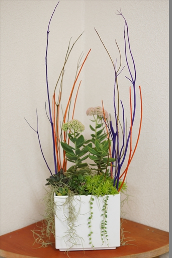 9月火曜、水曜教室、多肉植物の寄せ植え アレンジ教室 2016.09.07 先週に引き続き多肉植物の寄せ植えですが、市場にエアープランツがひとつも無い状態でどうしようかと悩んでいたら、染めの三又を発見! 見本作ってみたらこれがまたモダンな雰囲気に!! 独創的な作品になりました!! 共有: クリックして X で共有 (新しいウィンドウで開きます) X Facebook で共有するにはクリックしてください (新しいウィンドウで開きます) Facebook 関連